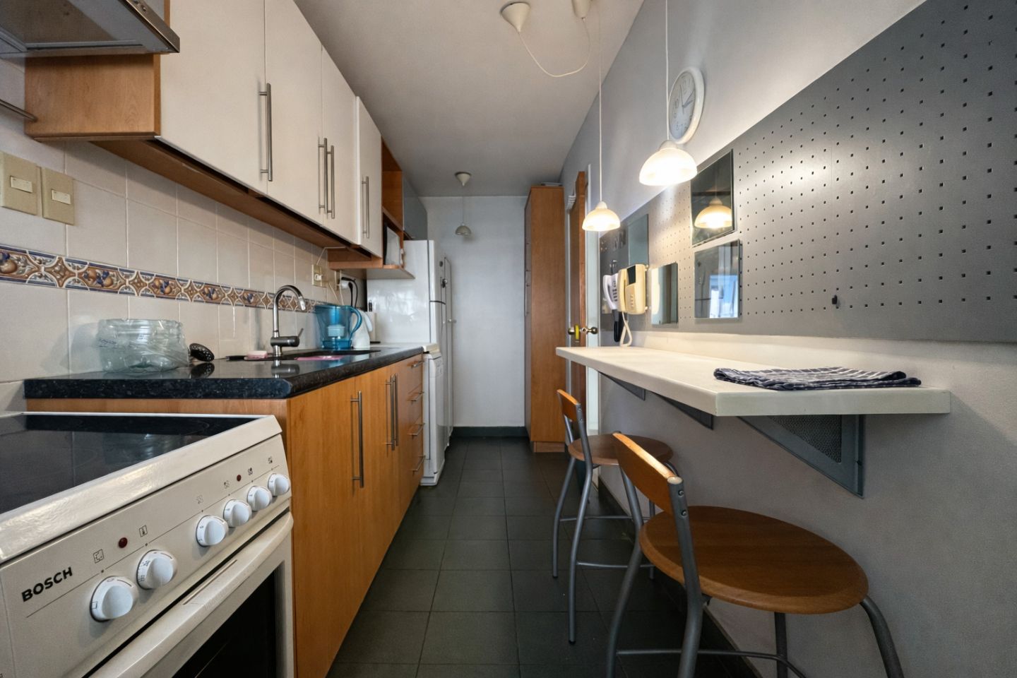 Muebles bajo y sobre mesada de cocina.