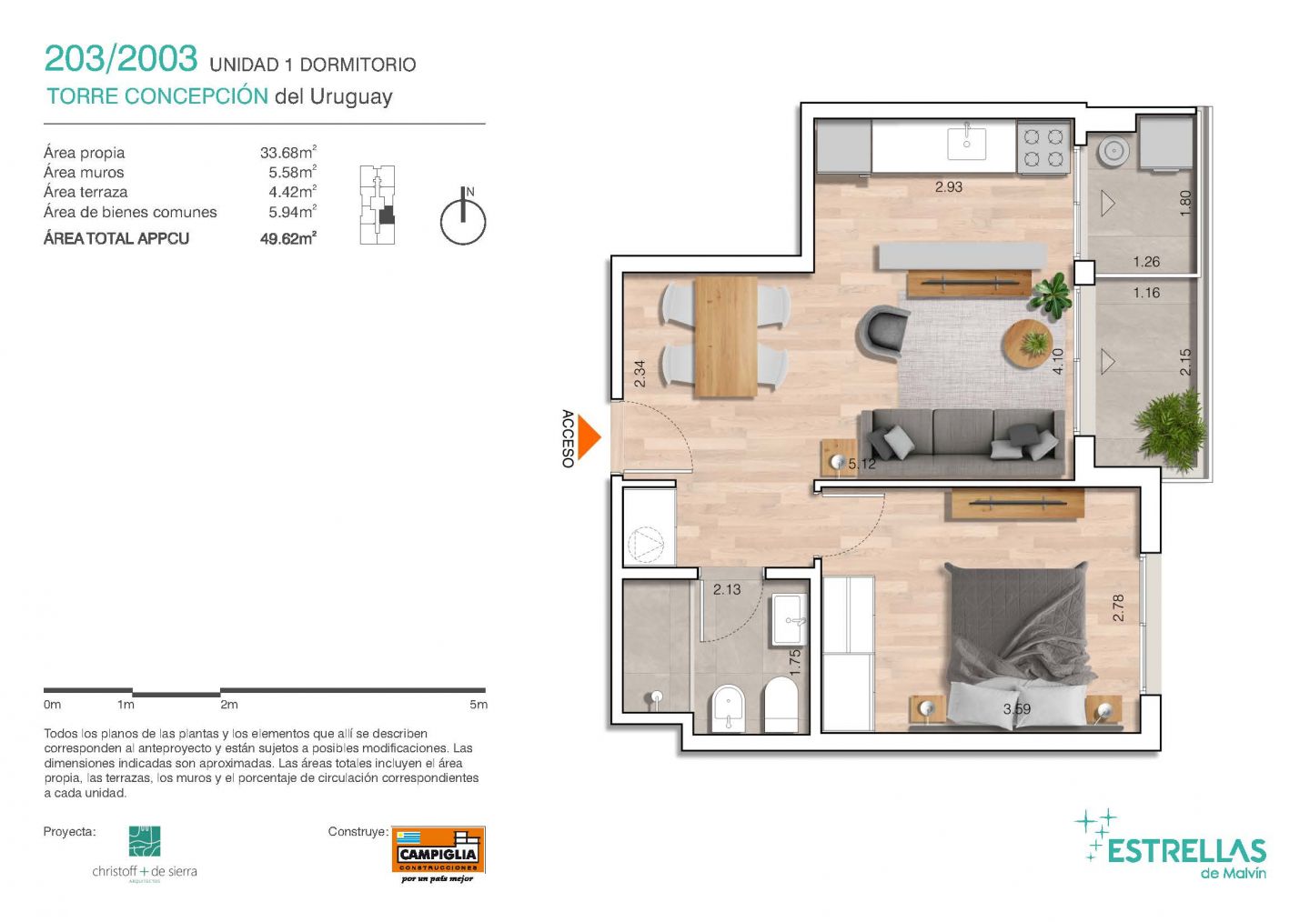 Alquiler 1 dormitorio con terraza y garaje- Estrellas de Malvín #1903