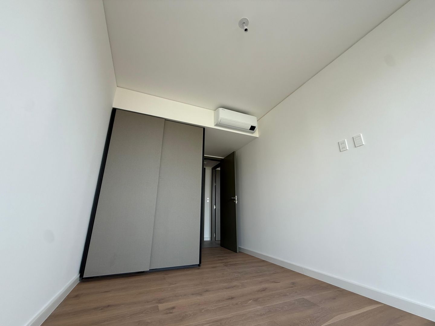 Pisos en terminación madera en dormitorios.