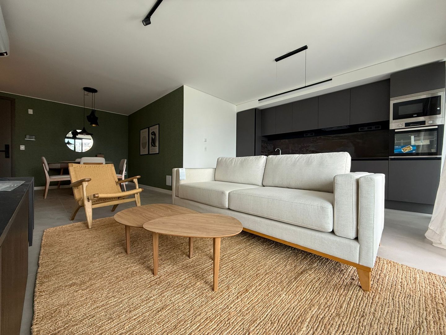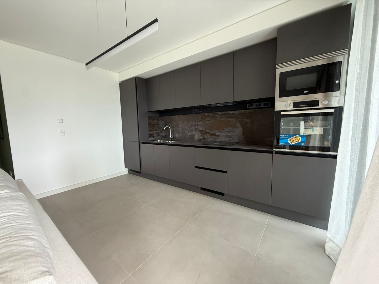 Pisos de porcelanato en cocina y living.