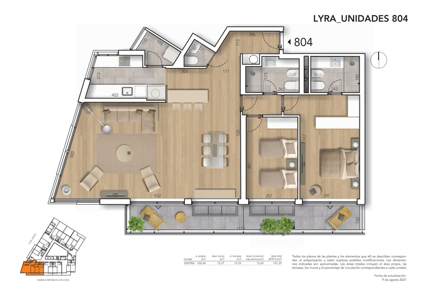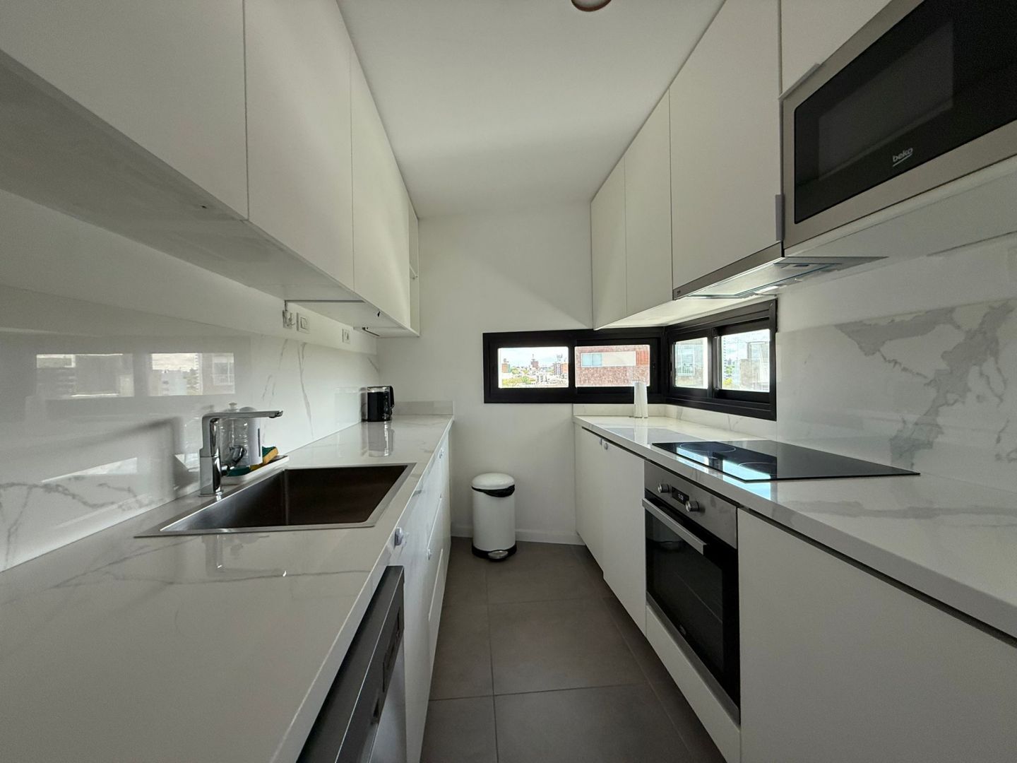 Ubicado en una esquina privilegiada y con orientación suroeste, este apartamento se destaca por su luz natural y su diseño pensado en cada detalle. La cocina, equipada con línea blanca Beko, combina estilo y funcionalidad, y se conecta directamente con la terraza de servicio.