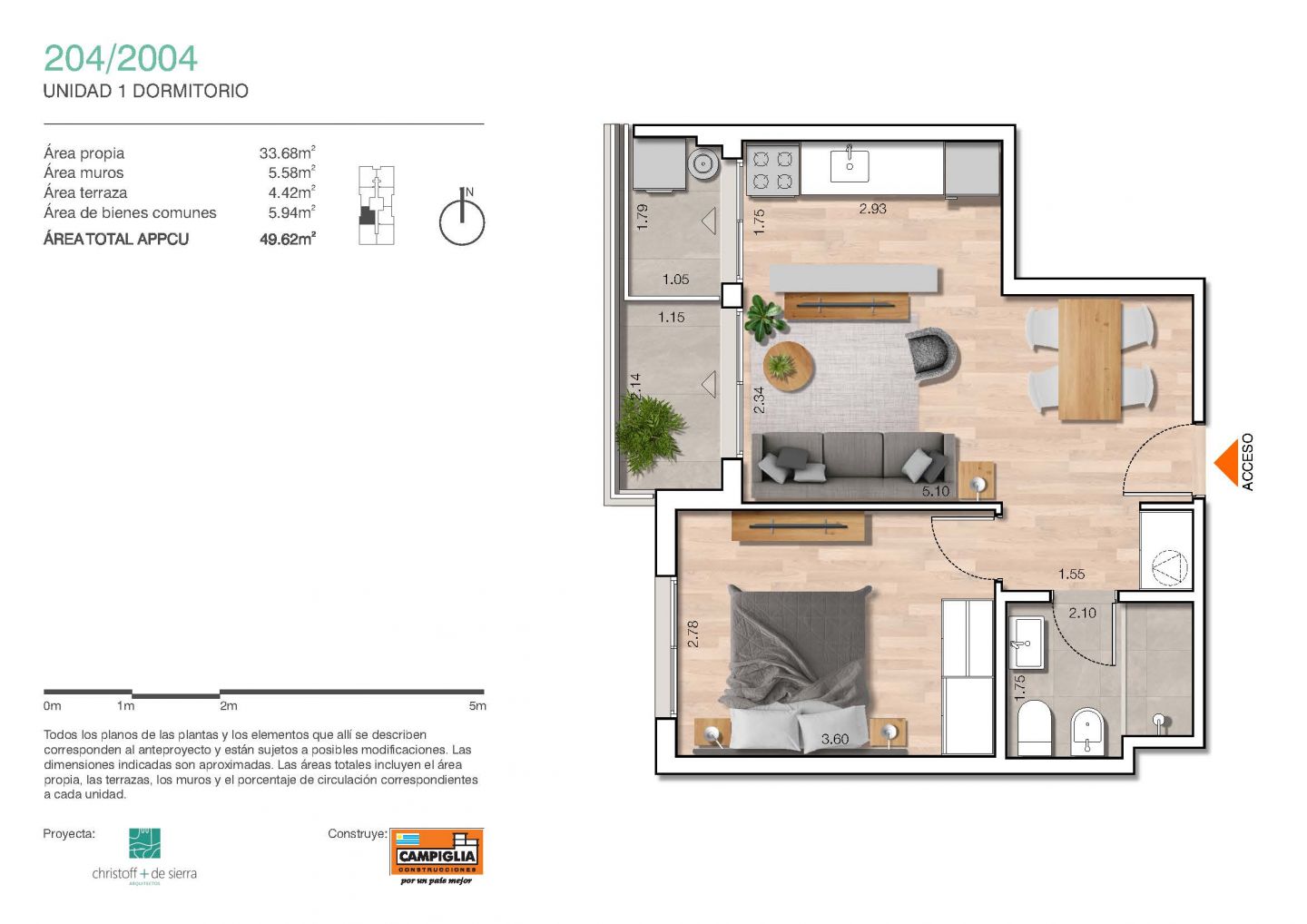 Alquiler de apartamento de 1 dormitorio con terrazas a estrenar.