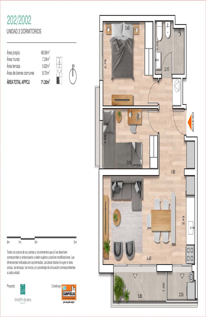 La distribución interior es muy versátil y cuenta con doble ventilación y gran terraza que permite disfrutar el aire libre.
