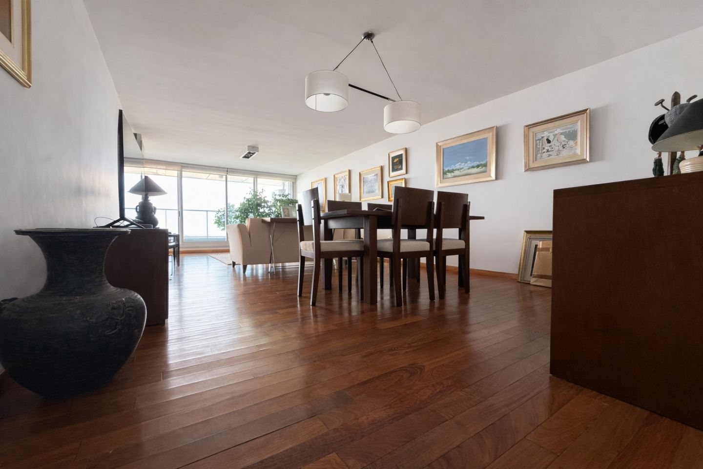 Al ingresar, te recibe un amplio living-comedor bañado de luz natural, con grandes ventanales que enmarcan la vista abierta al mar y conectan con una generosa terraza al frente, el lugar perfecto para disfrutar cada atardecer sobre la Rambla.