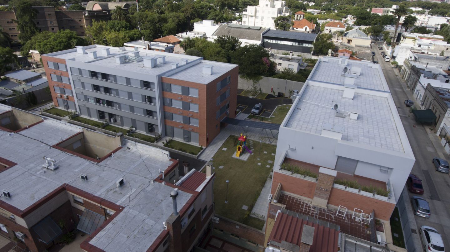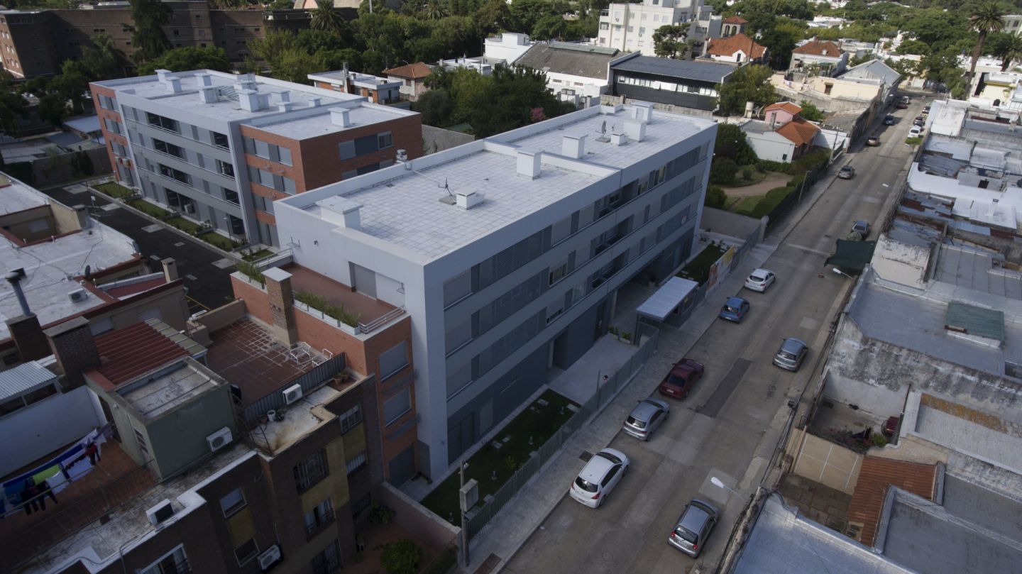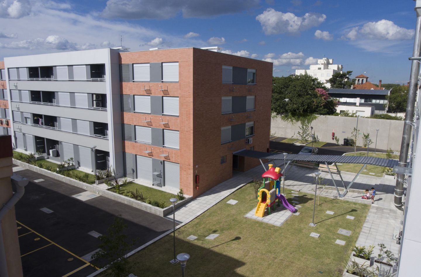 Está conformado por dos edificios con PB y tres pisos altos, en los cuales encontramos 67 apartamentos de uno, dos y tres dormitorios, excelente circulación interna y el encanto de vivir en El Prado.